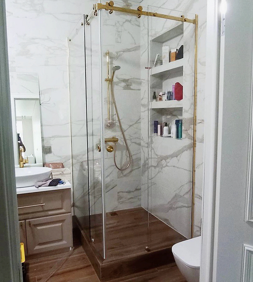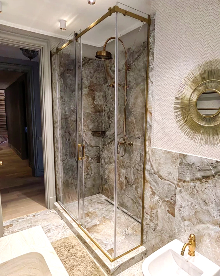 Компания MEER производит эксклюзивные душевые ограждения для ванных комнат. Каждое душевое ограждение прорабатывается индивидуально с клиентом до малейших деталей. В наших изделиях мы используем комплектующие премиум класса Комплектация Стекло закаленное, толщина 8 мм, полированная еврокромка (Англия) Цвет стекла: - прозрачное - осветленное прозрачное - графит - бронза - матовое - осветленное матовое - рифленое - дополнительно Вы можете выбрать пескоструйный рисунок, алмазную гравировку, фотопечать Фурнитура стандарт и премиум класса (Германия) Цвет фурнитуры: - хром глянцевый - нержавеющая сталь - бронза - черный матовый - золото - покраска по палитре RAL Цена указана за душевое ограждение в размере - 1100x700х2000 мм, стекло прозрачное, цвет фурнитры хром глянцевый Мы изготовим необходимое Вам душевое ограждение по индивидуальному размеру и макету