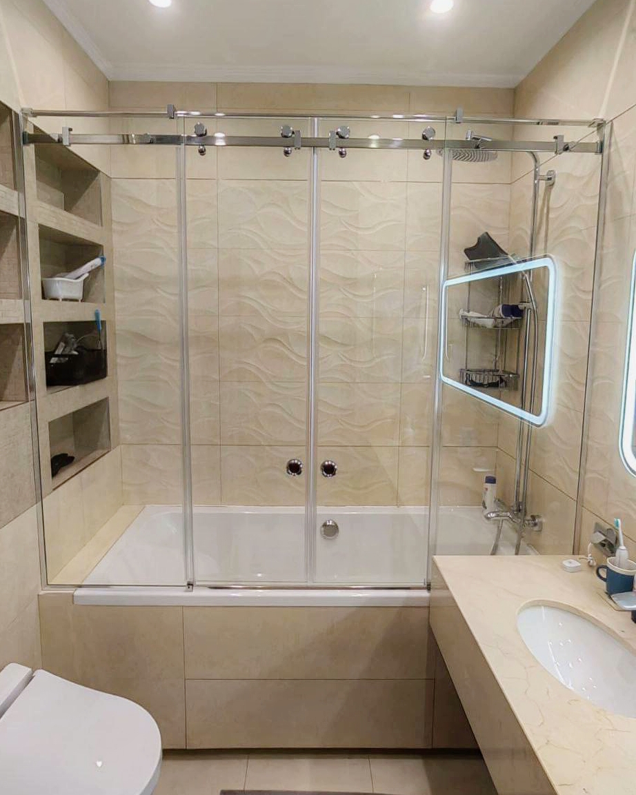 Компания MEER производит эксклюзивные душевые ограждения для ванных комнат. Каждое душевое ограждение прорабатывается индивидуально с клиентом до малейших деталей. В наших изделиях мы используем комплектующие премиум класса Комплектация Стекло закаленное, толщина 8 мм, полированная еврокромка (Англия) Цвет стекла: - прозрачное - осветленное прозрачное - графит - бронза - матовое - осветленное матовое - рифленое - дополнительно Вы можете выбрать пескоструйный рисунок, алмазную гравировку, фотопечать Фурнитура стандарт и премиум класса (Германия) Цвет фурнитуры: - хром глянцевый - нержавеющая сталь - бронза - черный матовый - золото - покраска по палитре RAL Цена указана за стационарную стеклянную шторку в размере - 900х1400 мм, стекло прозрачное, цвет фурнитры хром глянцевый Мы изготовим необходимую Вам стеклянную шторку на ванну по индивидуальному размеру и макету (стационарную, распашную, раздвижную) Для получения консультации Вы можете: - написать на электронную почту: manager@meerhome.ru - позвонить нам: +7 (915) 335-24-04
