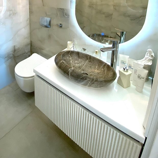 UGO - изящная навесная тумба с 3D фасадами. Вы можете выбрать наполнение тумбы, ручки (накладные, скрытые, без ручек - система открывания Tip-On), цвет столешницы, цвет боковых элементов и фасада из палитры ADILET, RAL, NCS Количество ящиков - от 1 шт Материал столешницы - искусственный камень Материал боковых элементов, фасада - влагозащищенный МДФ Материал ящиков, дна тумбы - ЛДСП Покрытие боковых элементов, фасада - пленка, эмаль Фурнитура - Boyard, Blum Тип крепления - навесное Цена указана за тумбу в размере (ШхГхВ) - 900x500х330 мм, МДФ в пленке, цвет корпуса белый матовый, 1 ящик, столешница 900х500х30 мм, цвет белый, фурнитура Boyard Мы изготовим необходимую Вам мебель по индивидуальному размеру и макету, с любым функционалом. Более 5000 цветовых решений по RAL или NCS палитре. Широкий выбор материалов - МДФ в эмали, МДФ в плёнке, AGT, FENIX, SMART, CLEAF. Выбор фурнитуры от средних до премиальных брендов. Для получения консультации Вы можете: - написать на электронную почту: manager@meerhome.ru - позвонить нам: +7 (915) 335-24-04