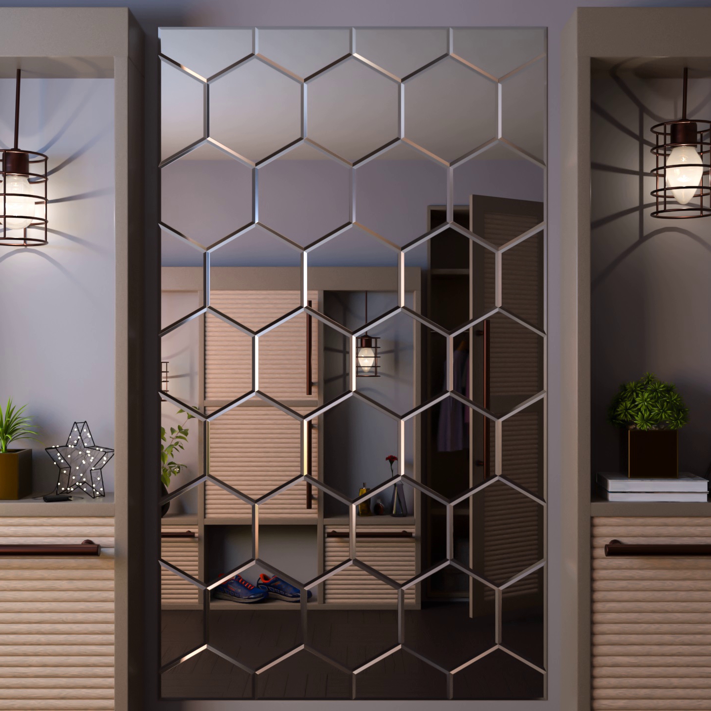 PASCAL — зеркальное панно, состоит из множества шестиугольных плиток с фацетом, которые складываются в орнамент, напоминающий пчелиные соты. Такое панно станет отличным украшением гостиной, прихожей или любого другого помещения Форма - прямоугольная Тип подсветки - без подсветки Толщина зеркального полотна - 4 мм Тип рамы - без рамы Общая толщина изделия - 4 мм Фацет - 10 мм Тип крепления - под вклейку Цена указана за панно в размере - 400x800 мм Мы изготовим необходимое Вам зеркальное панно по индивидуальному размеру и макету, с любым функционалом Для получения консультации Вы можете: - написать на электронную почту: manager@meerhome.ru - позвонить нам: +7 (915) 335-24-04