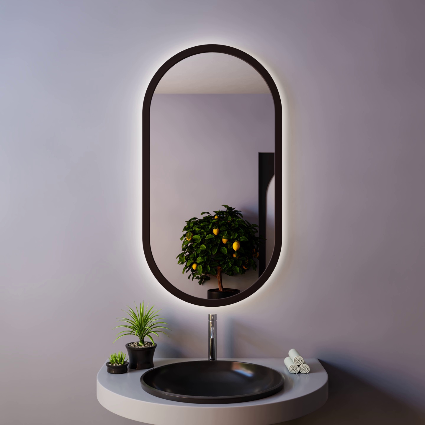ALBA - зеркало в деревянной раме, восхитительно смотрится практически в любом интерьере от неоклассики до минимализма, а боковая подсветка изящно подчёркивает элегантный силуэт изделия. Выберите желаемую ширину рамы, её цвет, а также оттенок подсветки, и мы изготовим идеальное зеркало в точности по указанным Вами характеристикам Форма - капсульная Тип подсветки - интерьерная Толщина зеркального полотна - 4 мм Тип рамы - дерево (МДФ) Толщина рамы - 36 мм Ширина рамы - от 26 мм Тип крепления - навесное Цена указана за зеркало в размере - 300x600 мм, рама МДФ черный цвет (RAL 9005), выключатель - без выключателя Мы изготовим необходимое Вам зеркало по индивидуальному размеру и макету, с любым функционалом Для получения консультации Вы можете: - написать на электронную почту: manager@meerhome.ru - позвонить нам: +7 (915) 335-24-04