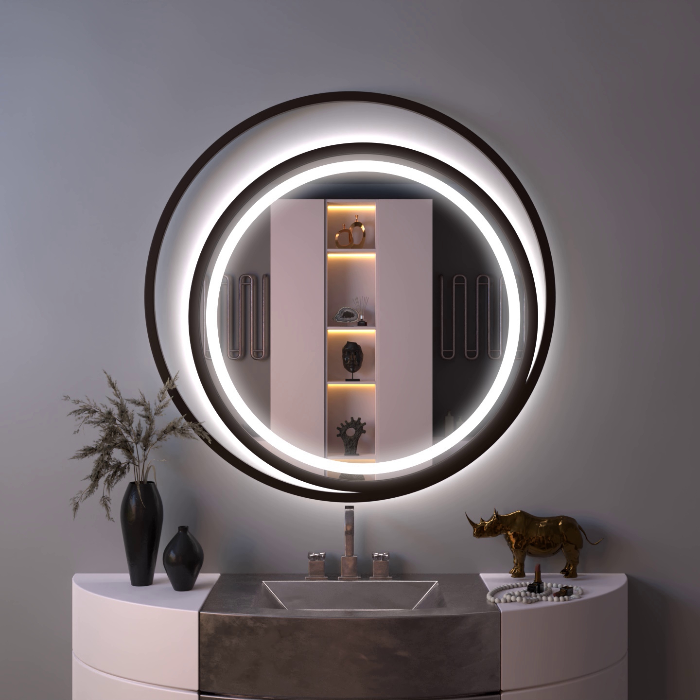 AMINA PLUS — зеркало в деревянной раме с подсветкой. Выберите желаемый размер зеркала, цвет рамы, а также оттенок подсветки, и мы изготовим идеальное зеркало в точности по указанным Вами характеристикам Форма - круглая Тип подсветки - интерьерная и фронтальная Толщина зеркального полотна - 4 мм Зеркальный отступ - 7 мм Ширина подсвеченной области - 25 мм Общая толщина изделия - 36 мм Тип рамы - дерево (МДФ) Ширина рамы - от 10 мм Тип крепления - навесное Цена указана за зеркало в размере - 400x400 мм, рама МДФ черный цвет (RAL 9005), выключатель - без выключателя Мы изготовим необходимое Вам зеркало по индивидуальному размеру и макету, с любым функционалом Для получения консультации Вы можете: - написать на электронную почту: manager@meerhome.ru - позвонить нам: +7 (915) 335-24-04