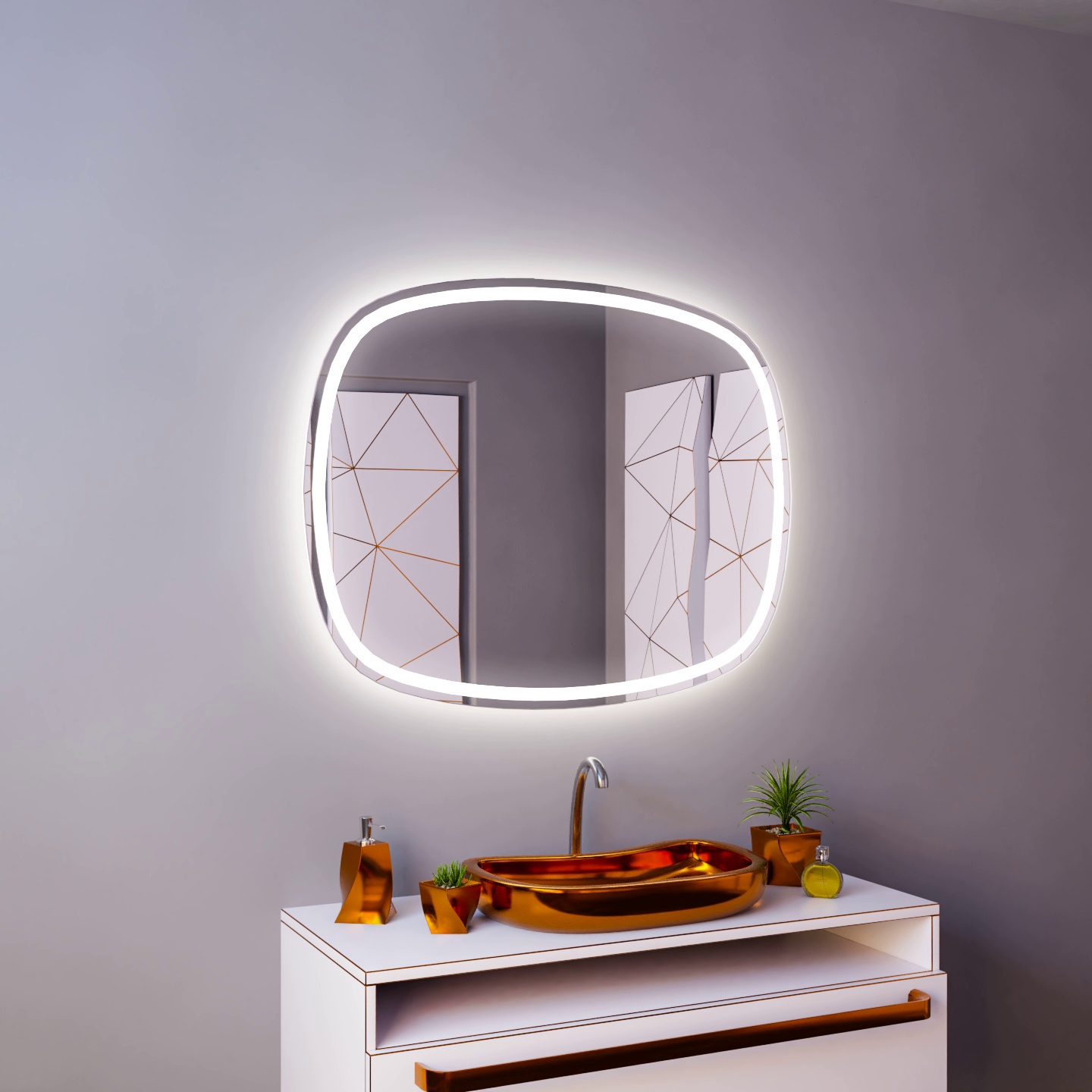 BLUR — зеркало с интерьерной и фронтальной подсветкой, которые позволяют одновременно акцентировать внимание на необычном силуэте изделия и подчеркнуть поверхность около зеркала. Выберите желаемую цветовую температуру подсветки из трёх доступных вариантов, чтобы зеркало максимально гармонично вписалось в ваш интерьер Форма - овальная, скругленные углы Тип подсветки - интерьерная и фронтальная Толщина зеркального полотна - 4 мм Тип рамы - пластик Толщина рамы - 25 мм Общая толщина изделия - 29 мм Тип крепления - навесное Цена указана за зеркало в размере - 400x800 мм, выключатель - без выключателя Мы изготовим необходимое Вам зеркало по индивидуальному размеру и макету, с любым функционалом Для получения консультации Вы можете: - написать на электронную почту: manager@meerhome.ru - позвонить нам: +7 (915) 335-24-04