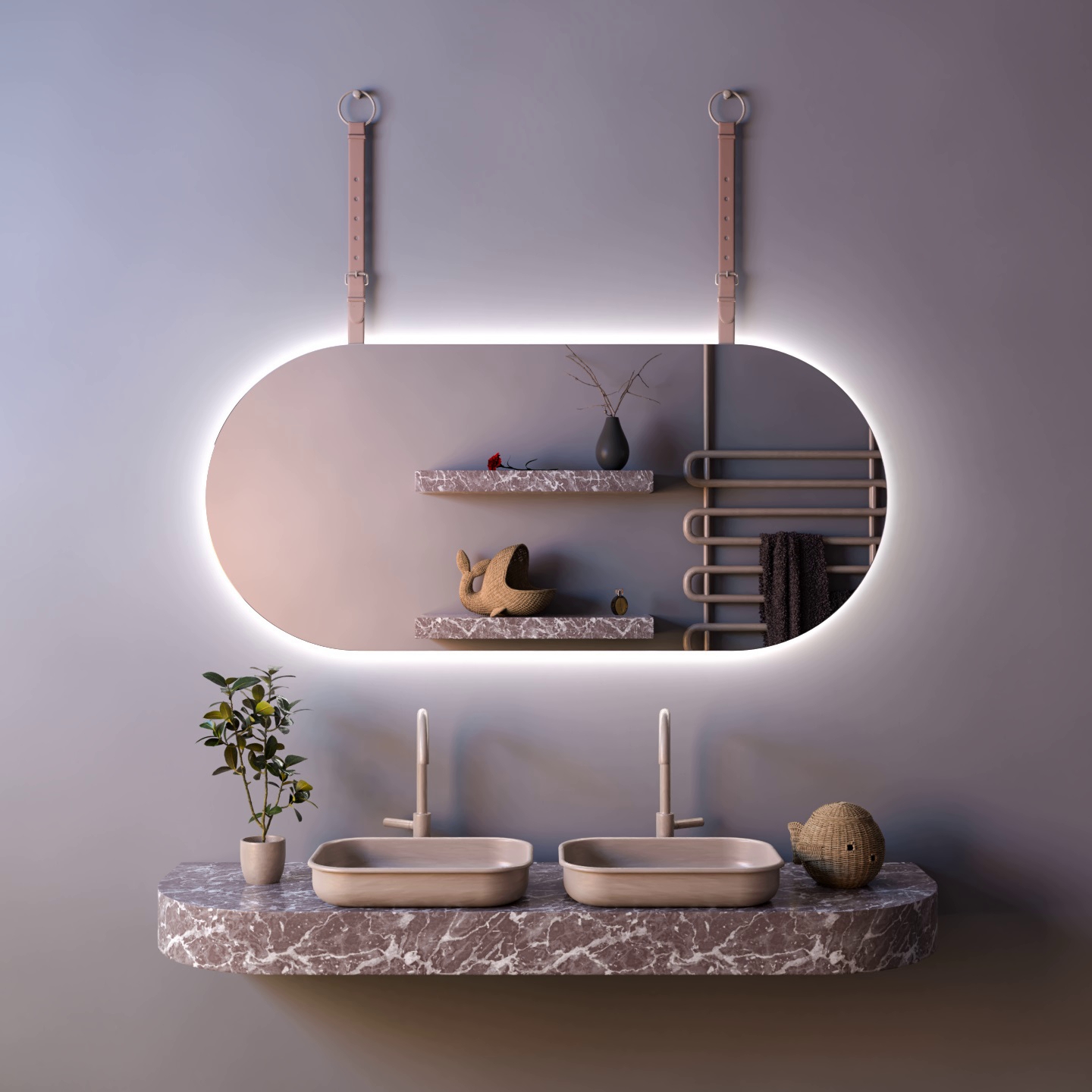 CAMELOT EXTRA — зеркало с подсветкой, подходит для размещения в санузлах и любых других помещениях. Оно украшено двойным ременным подвесом, цвет которого мы предоставляем на выбор. Интерьерная подсветка подчеркнёт красоту изделия и сделает любую комнату уютнее и светлее Форма - капсульная Тип подсветки - интерьерная Толщина зеркального полотна - 4 мм Тип рамы - пластик Толщина рамы - 25 мм Общая толщина изделия - 29 мм Тип крепления - навесное Цена указана за зеркало в размере - 600x300 мм, кожанный ремень белого цвета, выключатель - без выключателя Мы изготовим необходимое Вам зеркало по индивидуальному размеру и макету, с любым функционалом Для получения консультации Вы можете: - написать на электронную почту: manager@meerhome.ru - позвонить нам: +7 (915) 335-24-04