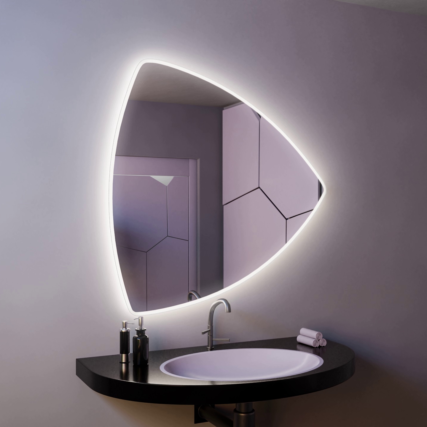 METEOR — зеркало необычной формы – равносторонний треугольник с выпуклыми гранями. Края зеркала обработаны особым образом, благодаря чему его периметр становится прозрачным и пропускает свет, идущий из корпуса изделия Форма - фигурная Тип подсветки - интерьерная и фронтальная Толщина зеркального полотна - 4 мм Тип рамы - пластик Толщина рамы - 20 мм Общая толщина изделия - 24 мм Тип крепления - навесное Цена указана за зеркало в размере - 500x500 мм, выключатель - без выключателя Мы изготовим необходимое Вам зеркало по индивидуальному размеру и макету, с любым функционалом Для получения консультации Вы можете: - написать на электронную почту: manager@meerhome.ru - позвонить нам: +7 (915) 335-24-04